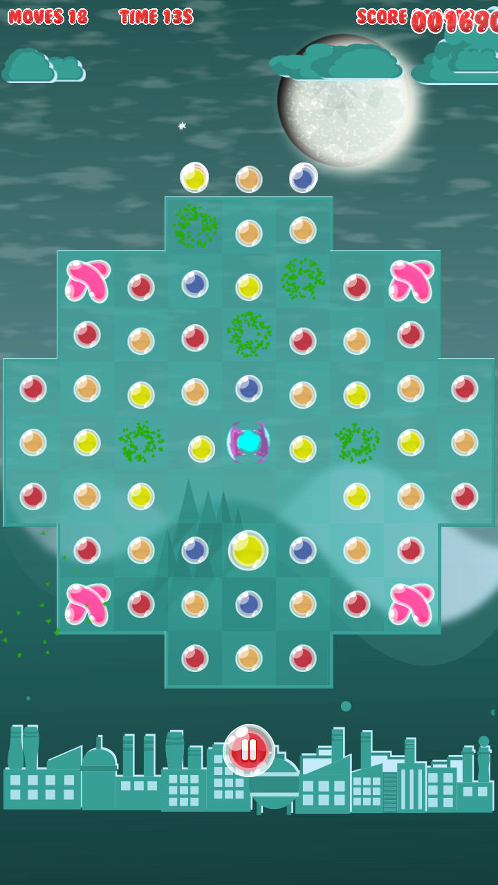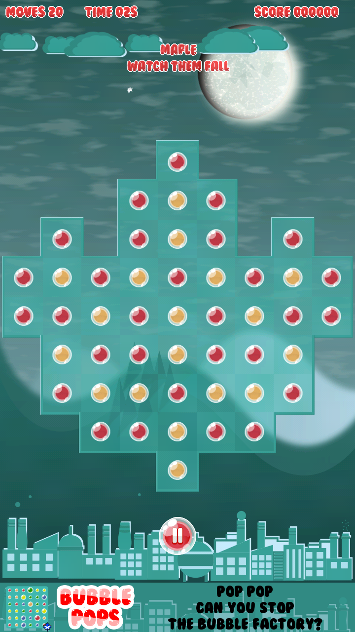 MapleScot Development has released another wildly addictive puzzle game for Android. Bubble Pops is simple and fun in both appearance and game-play but presents ever-increasing challenges to keep players engaged. The game is a match-three style puzzle where the objective is simply to make matches of 3 or more of the same coloured bubbles in a line horizontally or vertically. When bubbles are matched up the merge and grow bigger and bigger until they burst in a shower of fragments. The fragments can then join with other bubbles and cause chain reactions. Each level presents new challenges with the introduction of time limits or special collections to achieve. Levels include features such as breakable and unbreakable walls and warps which teleport the falling bubbles. Player performance on each level is rated on a 3-star scale. One star is required to unlock then next level, but the greatest and most exciting challenge is to get 3 stars on all levels.