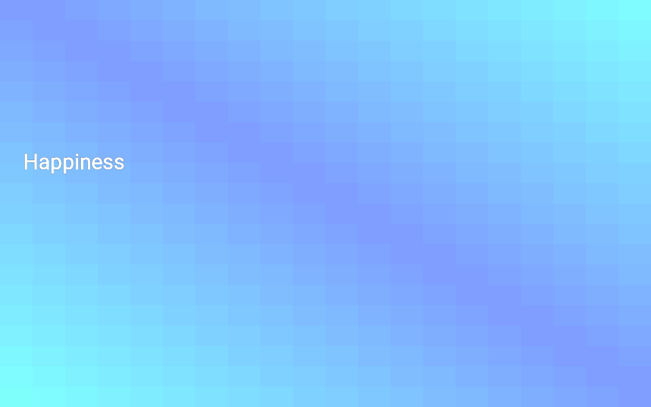 They say you can't buy happines... We say, they're wrong! Introducing the new release from MapleScot development - Happiness! Happiness is a lifestyle app designed to explore colours in a way that can be soothing or uplifting. When you come home from work or school feeling stressed out and agitated and just want to relax then "Happiness" from MapleScot Development is there for you.i Happiness works on your phone/tablet/TV and allows you to watch soothing colours and happy text messages or images which encourage you to let go your agitation and feel that Happiness you want to feel. Happiness can run standalone as a regular Android app or as your screensaver (daydream app). Set it to waves on a slow colour cycle with a sleep time and let it soothe you to sleep.